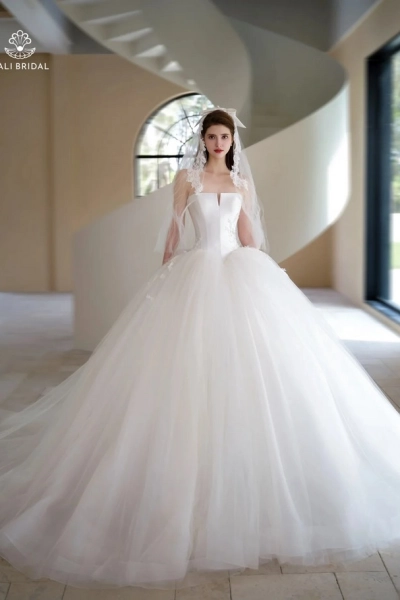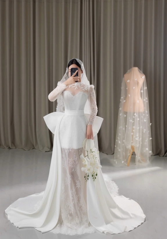 Phong cách váy cưới sang trọng, đường may tỉ mỉ, thiết kế đẳng cấp. Trải nghiệm mua sắm tại JAMAL AL YASMIN thật sự đáng tin cậy.