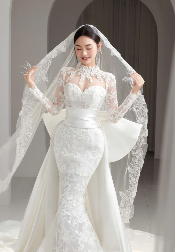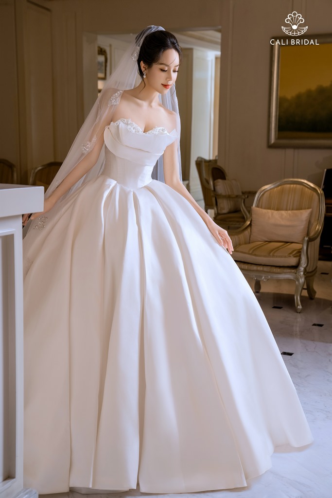 Váy cưới thiết kế tinh xảo, chất liệu cao cấp, form dáng hoàn hảo.